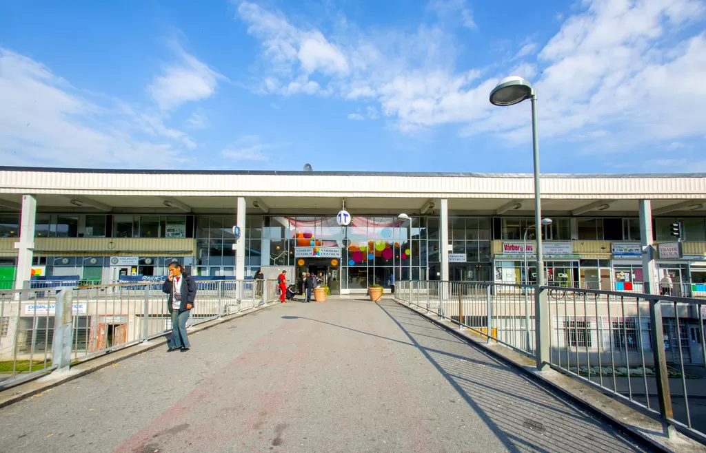 Här nära busstorget i Skärholmens centrum öppnar den nya mini-återvinningscentralen.