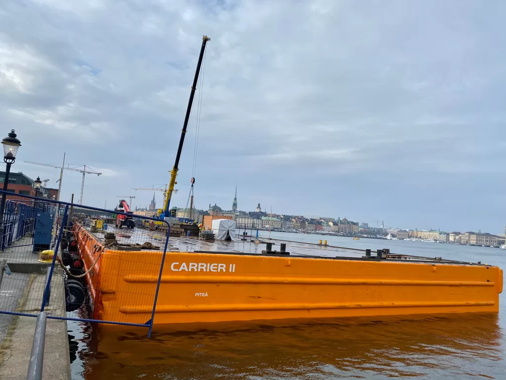 Pontonen som ska användas som tillfällig bussterminal för Nacka- och Värmdöbussarna har varit på plats sedan i mars.