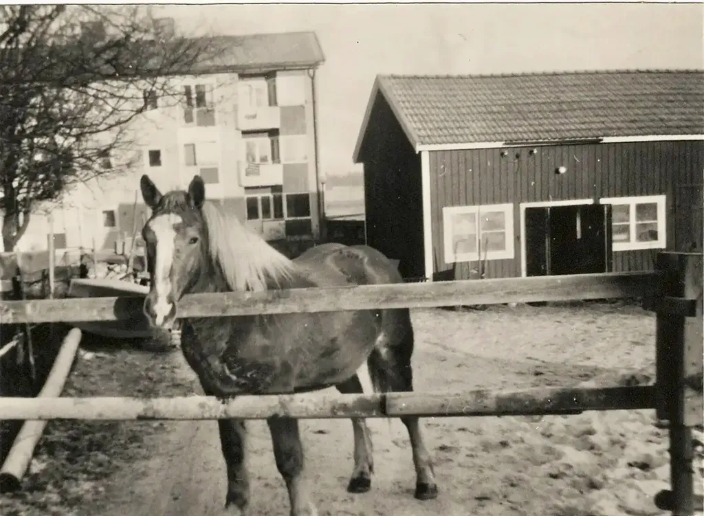 DÅ: Petterssons häståkeri, Skolvägen 7. Hästen Saga 1960.