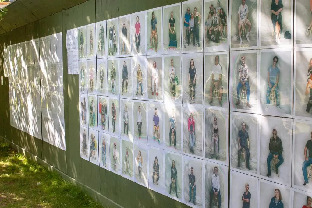 Därefter sätts porträtten och åsikterna upp på planket. Men inte bredvid varandra, åsikterna ska vara anonyma.