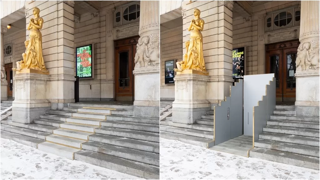 Hissen, vid trappan in till entrén, är en del av Dramatens arbete för att öka tillgängligheten. Man har även utökat antalet rullstolsplatser på parkett. Den hiss som nu är på plats drivs av hydraulik med en integrerad lyftplattform som fäller ihop sig och smälter in i trappan när den inte används.