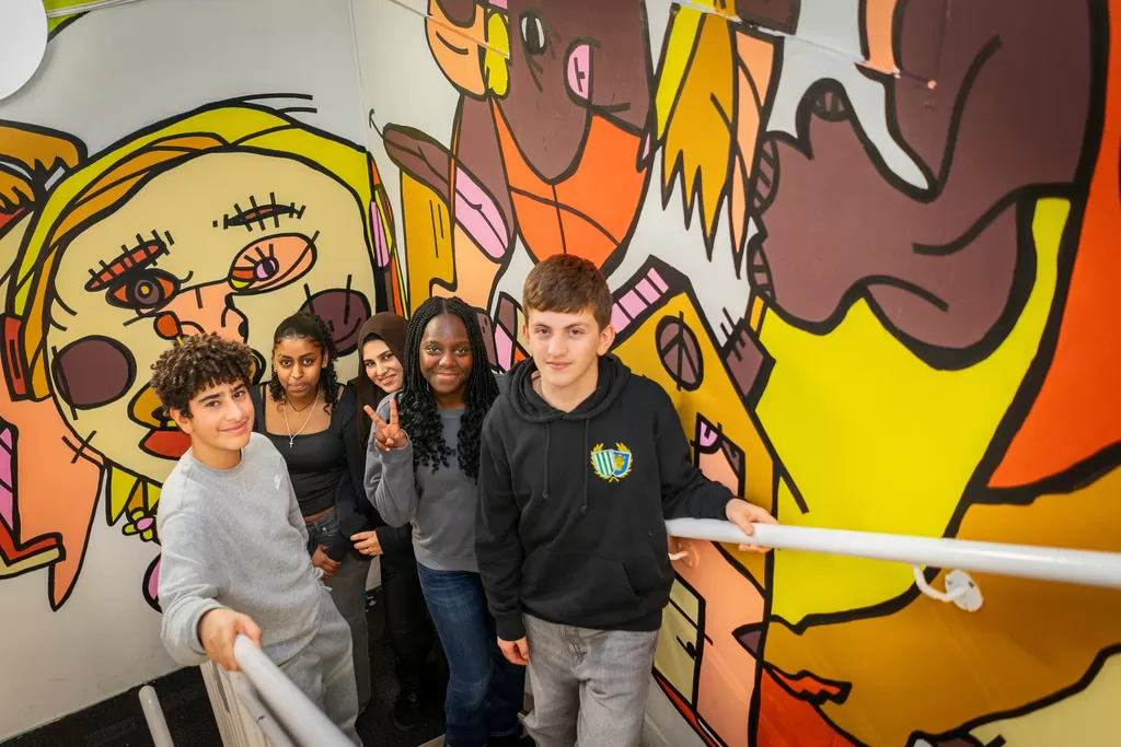 Genom ett projekt med konstnärskollektivet Streetcorner har eleverna i årskurs 8 målat om väggarna. Allt i en process där klasserna samarbetade med varandra.