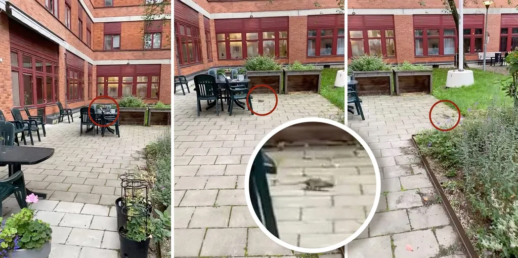 Videoklipp visar hur en råtta sitter på ett bord vid äldreboendet Väderkvarnens utegård.