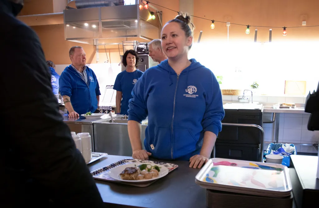 Varje dag, 365 dagar om året, serveras omkring 120 tallrikar av dagens rätt. Maten är proteinrik husmanskost och det finns alltid ett vegetariskt alternativ. Majoriteten av gästerna som dyker upp i kyrkan kan vanligtvis betala för sin lunch. Men situationen har förändrats drastiskt under det senaste året