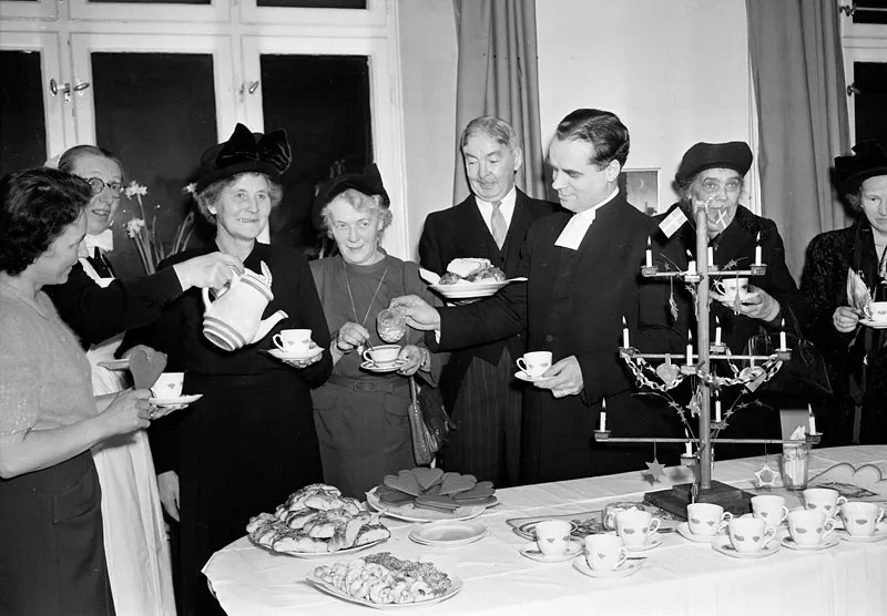 På Västmannagatan 92 i Matteus församling serveras Julfemmans fika 1950.