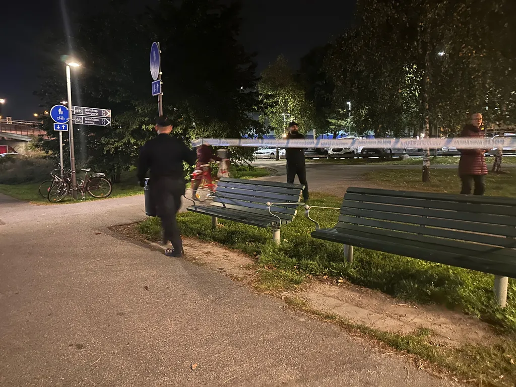 Polisen utökade det avspärrade området vid Mälarhöjdens IP efter hand under kvällen.