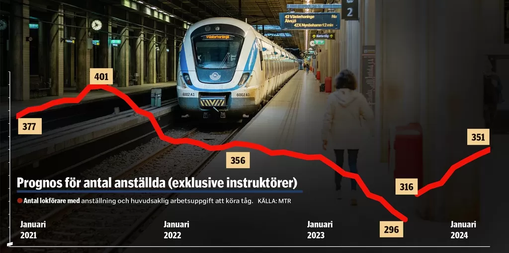 På två år har antalet anställda lokförare inom MTR Pendeltågen minskat från 401 till 296 stycken, enligt färska siffror.