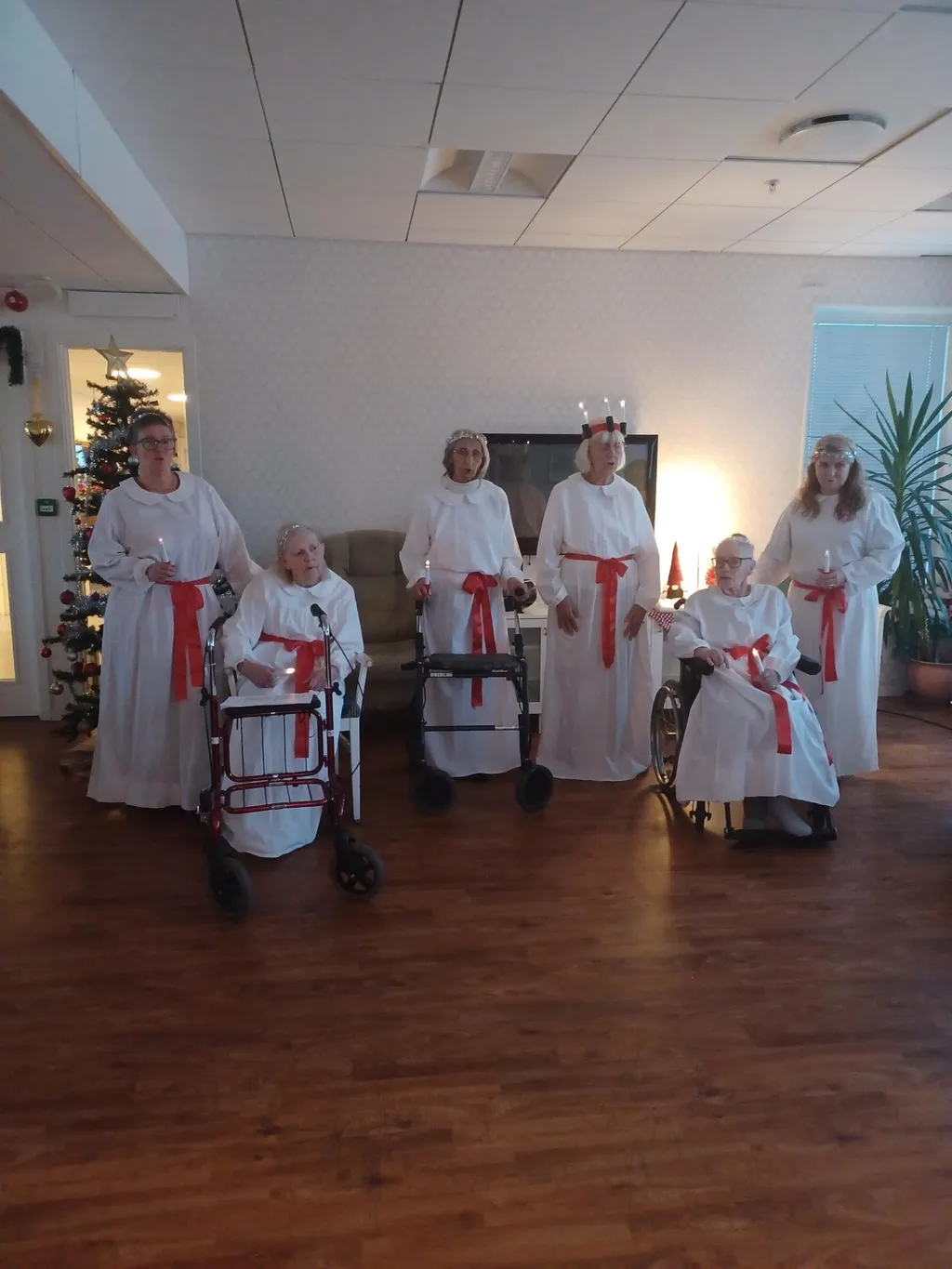 – Vi lussade på alla fem våningarna. Det var stämningsfullt och en och annan tår fälldes av publiken när vi sjöng Natten går tunga fjät, Stilla natt och Gläns över sjö och strand, säger Helén Lampert Sandin, aktivitetssamordnare på äldreboendet.